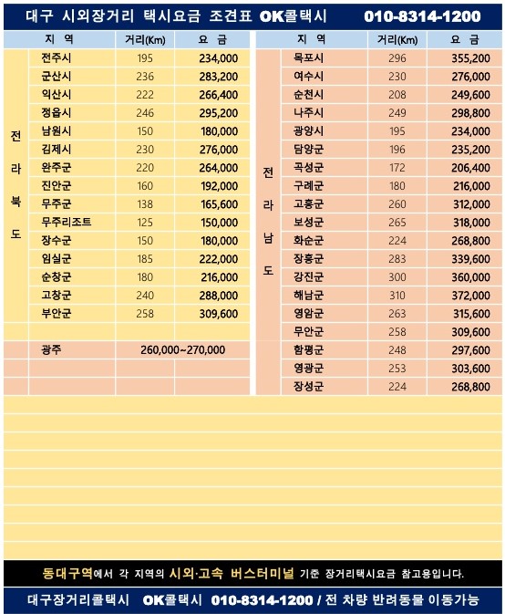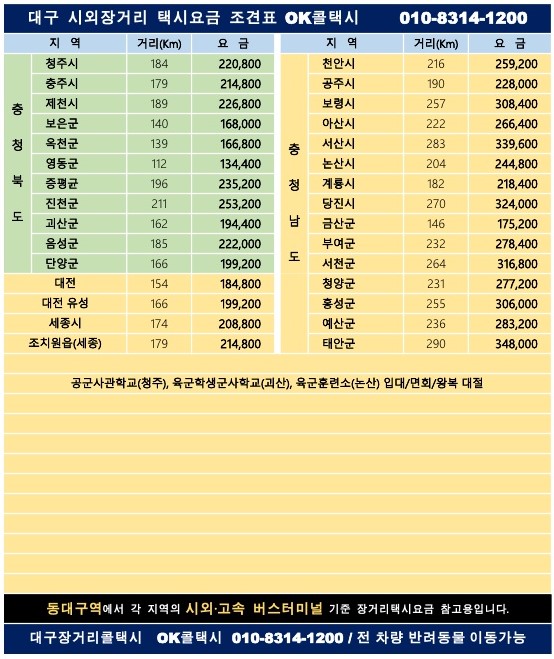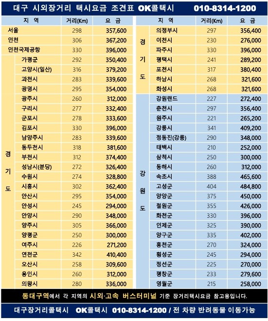 대구 대표 장거리 콜택시 - OK 콜택시 입니다~